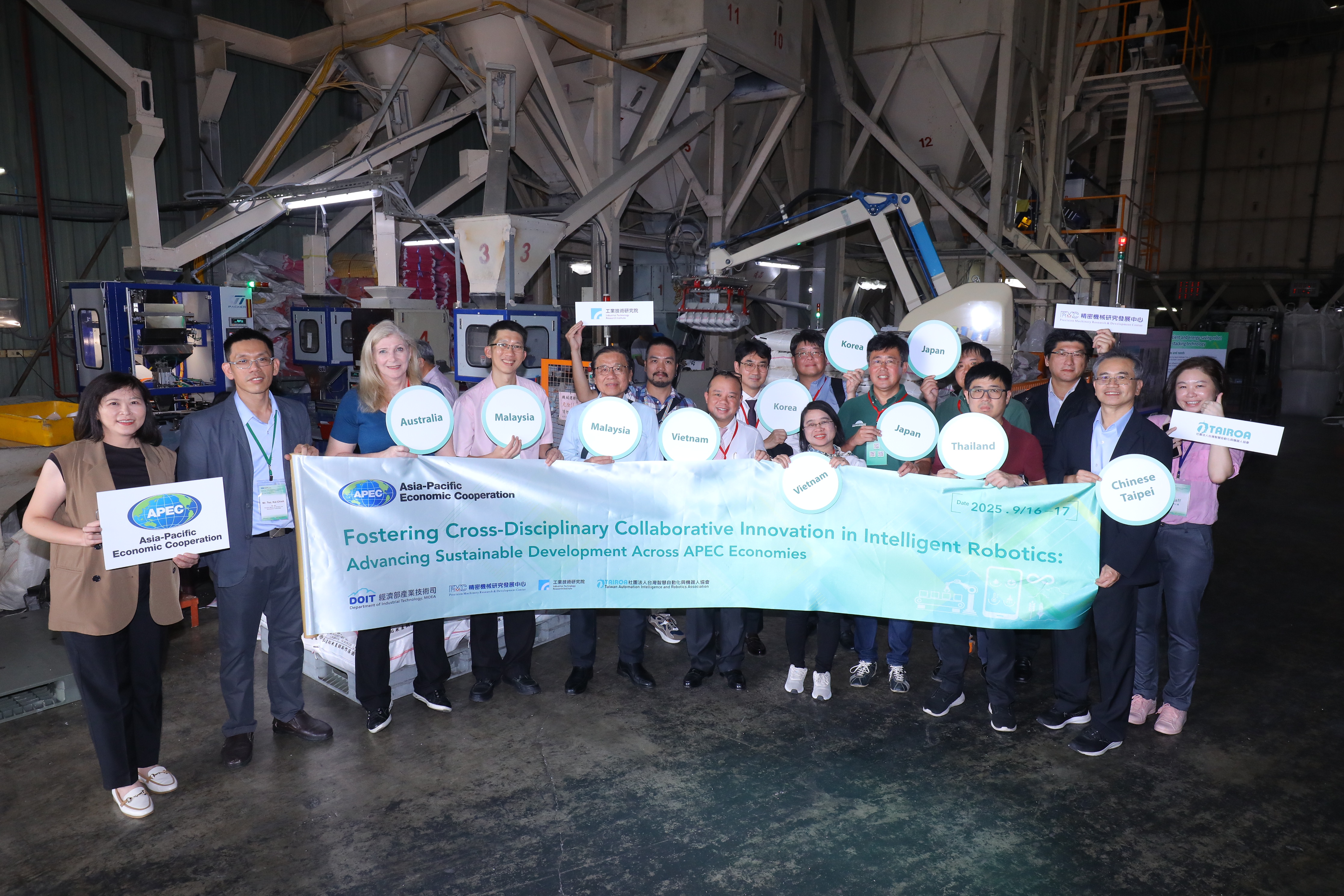 除了議程交流,與會專家亦實地參訪台南弘昌碾米工廠。該廠在科專計畫支持下導入智慧堆棧技術,整合機器人堆棧專家系統與移載設備減碳優化模組,不僅使生產效率提升 20%,人力成本每年降低 50%,碳排放亦顯著減少,更成為穩定台灣 150 萬噸稻米供應的關鍵推手。這一案例充分展現智慧機器人技術如何協助傳統產業轉型,也為 APEC 經濟體提供可供複製的實證模式。